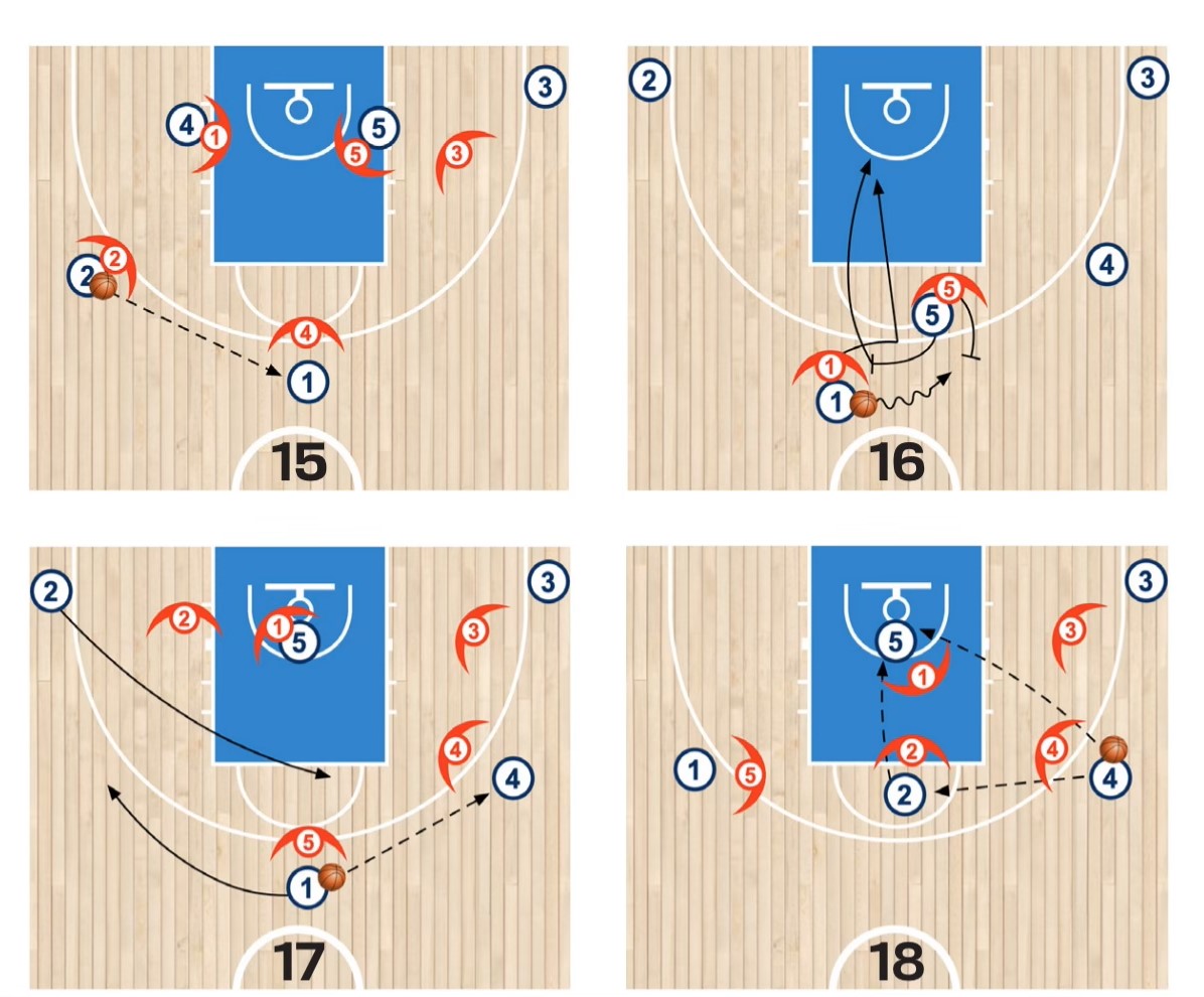 L’obiettivo principale dello schema è quello di sfruttare le caratteristiche del giocatore numero 3, esterno alto e forte fisicamente, facendolo trovare spalle a canestro prima e con 1/4 di campo libero successivamente così che possa giocare 1c1. Continua a leggere